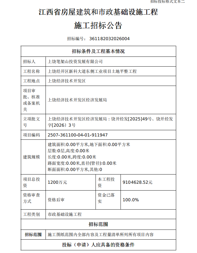 1.招標條件本招標項目上饒經(jīng)開區(qū)夜珠壟自建房安置點地塊及友邦狀元城地塊排水設(shè)施提升改造工程,招標人為上饒筆架山投資發(fā)展有限公司,建設(shè)資金已落實,項目已具備招標條件,現(xiàn)就該項目的施工進行公開搖號遴選。2.項目概況與招標范圍2.1項目名稱:上饒經(jīng)開區(qū)夜珠壟自建房安置點地塊及友邦狀元城地塊排水設(shè)施提升改造工程2.2項... [更多]